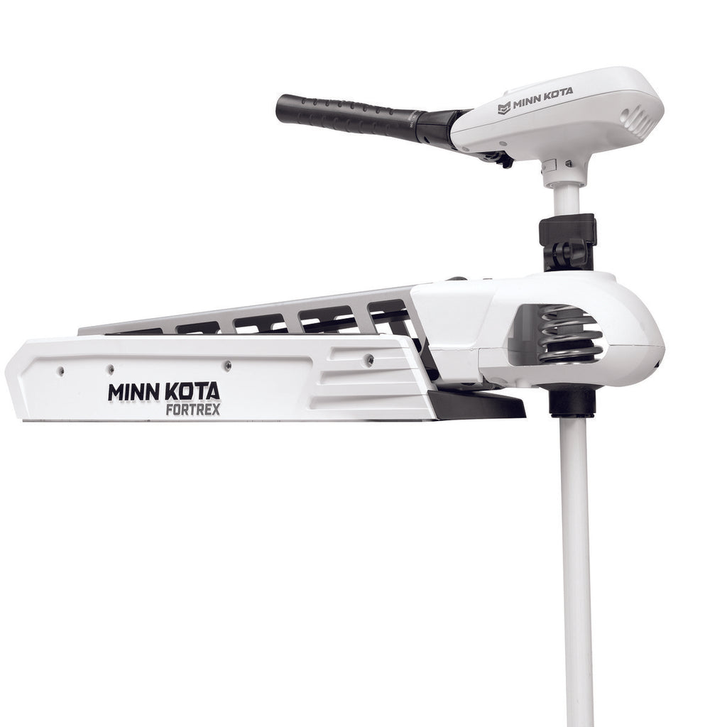 Riptide Fortrex 112 is a step up from the Minn Kota Riptide Maxxum and is the beefiest, most heavy-duty trolling motor in the Minn Kota line up. The motor is unique as it features an aluminum mono-arm, a removable BowGuard 360 spring-protected shaft housing, and a nitrogen charged gas spring that makes stowing and deploying the motor similar to opening up the tailgate on an SUV.